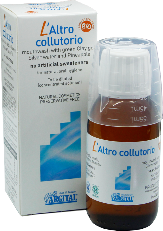 ARGITAL Silber-Mundwasser (100 ml) mit grünem Tonerdegel, Mistel, Salbei, Ratanhia, Ringelblume, Minze, Ananas und Argital Silberwasser.