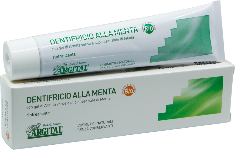 Natürliche Zahncreme mit Pfefferminze, die natürliche Zahnpflege mit Pfefferminz erfrischt den Mund und Rachenraum. Mit Pfefferminzöl, Pfefferminz Extrakt, Rosen Extrakt, Berberitze Extrakt und Meersalz sowie der Grundlage aller Zahnpasten von ARGITAL, Tonerde-Gel, welches die natürlichen enthaltenen Mineralstoffe und Spurenelemente der Tonerde enthält, ohne die Kieselerde, diese hat eine abschleifende Wirkung und ist deshalb nicht in der Zahnpaste enthalten.
